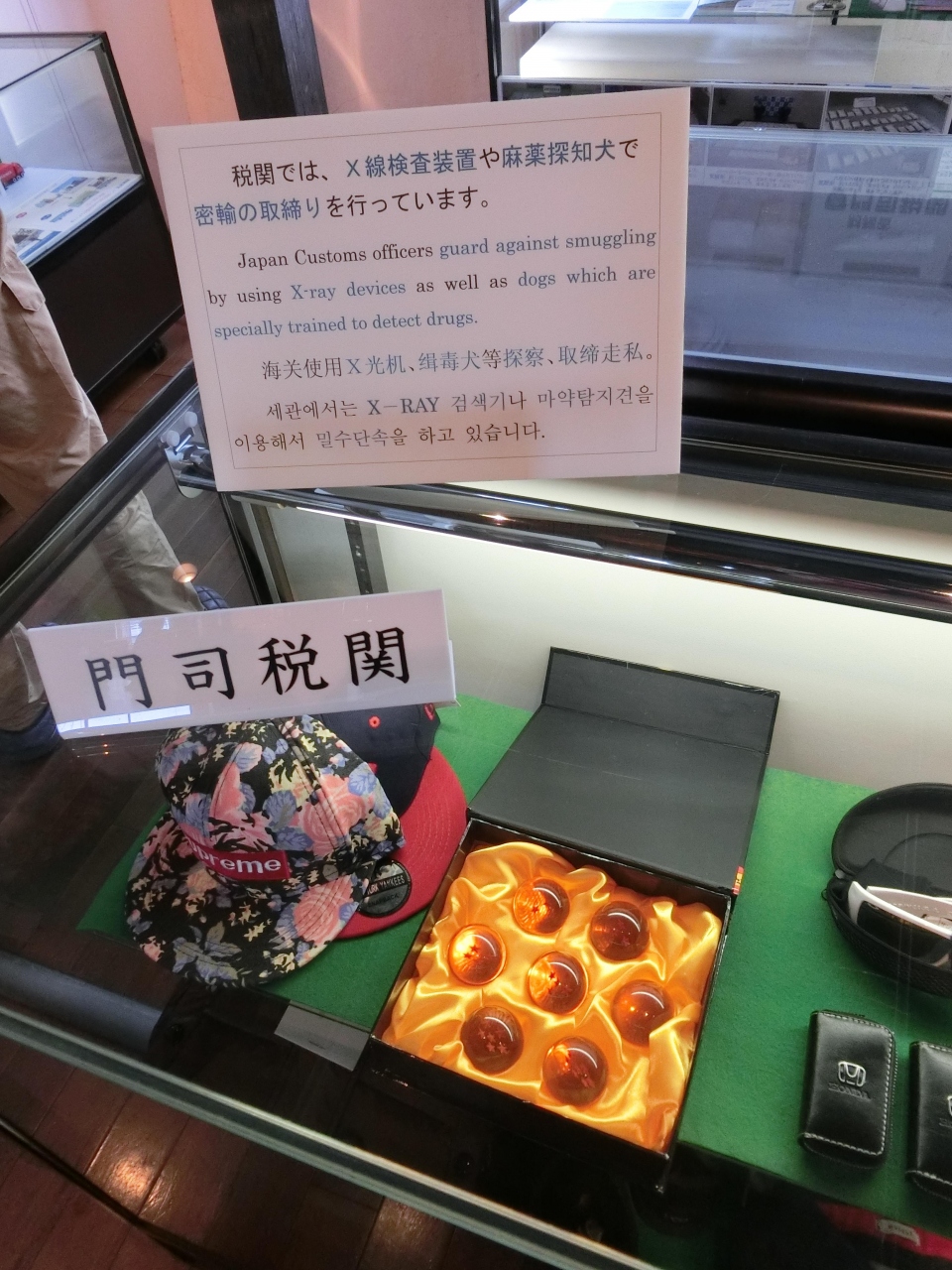 ここは税関だったということで、麻薬探知犬のポスターや偽ブランド品の展示があり、