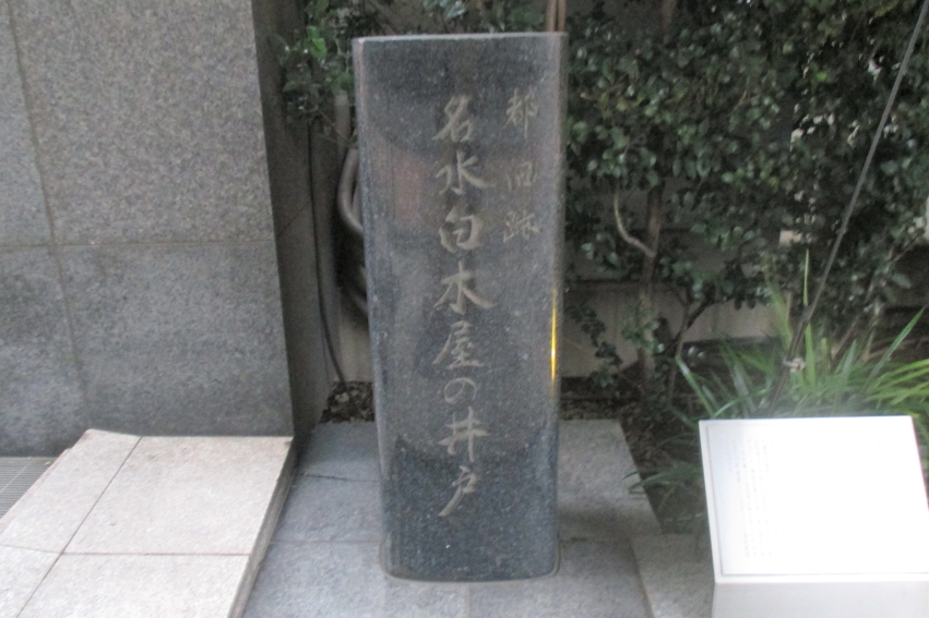 コレド日本橋の裏手に「名水白木屋の井戸」と書かれた石碑がありました。漱石名作の舞台の碑と並んでいます。江戸時代中期、日本橋の呉服屋白木屋の店主が、日本橋周辺の水の悩みを解消するため店内に井戸を掘り、難工事の末、こんこんと清水が湧き出したのだそうです。数百年で絶えてしまったそうですが、記念として日本橋交差点の角に建立されていたのを、2004年にこの地に移したとのことです。