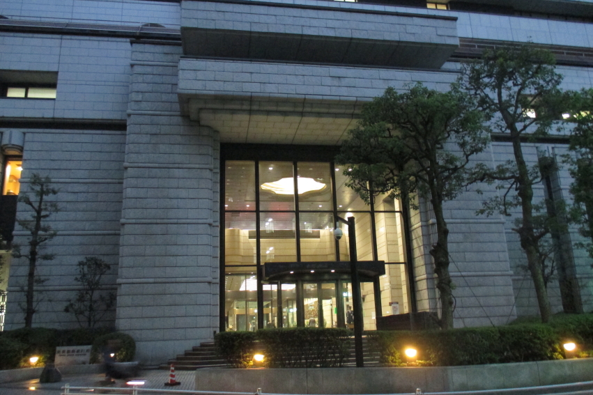 日本橋から日本橋沿いに茅場町に向かっているところで東京証券取引所がありました。普段はまったくご縁のない場所なので、久しぶりに見た気がします。一般人が立ち入る場所でもないし、夕方だったので、付近には一層人影がなく、建屋内の守衛さんの姿だけでした。