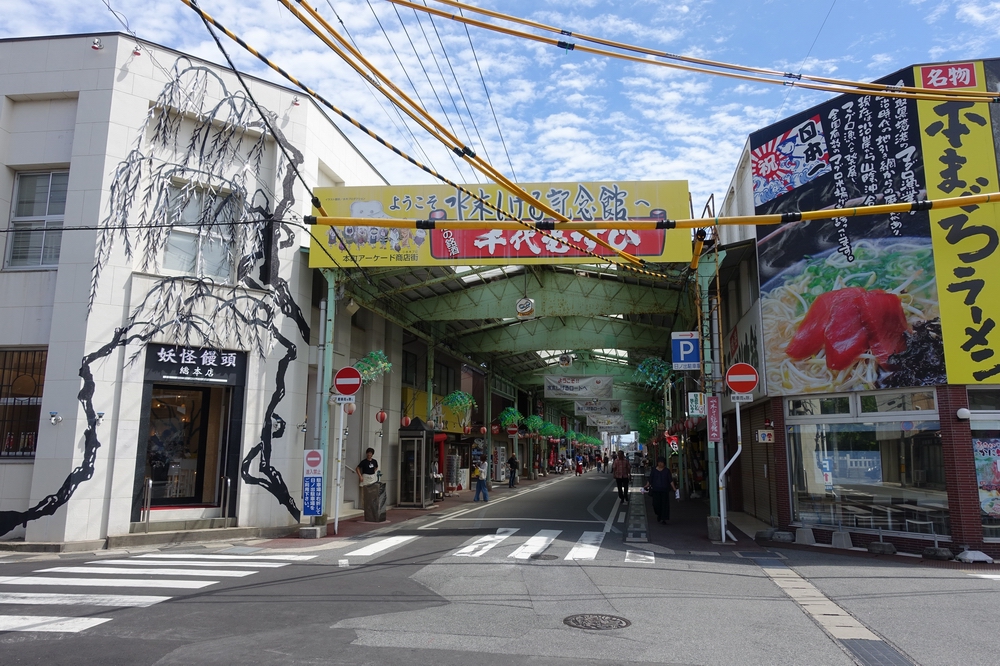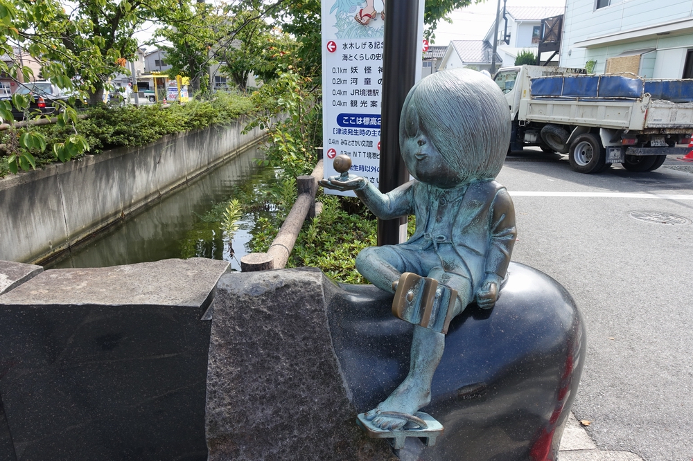 通り沿いには、妖怪ブロンズ像、目玉の街灯、妖怪神社、河童の泉など、フォトスポットが次々に現れるので、水木しげる記念館までの距離が短く感じるほど楽しみながら歩けます。
