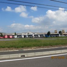大型バスが沢山停められるようになっている。