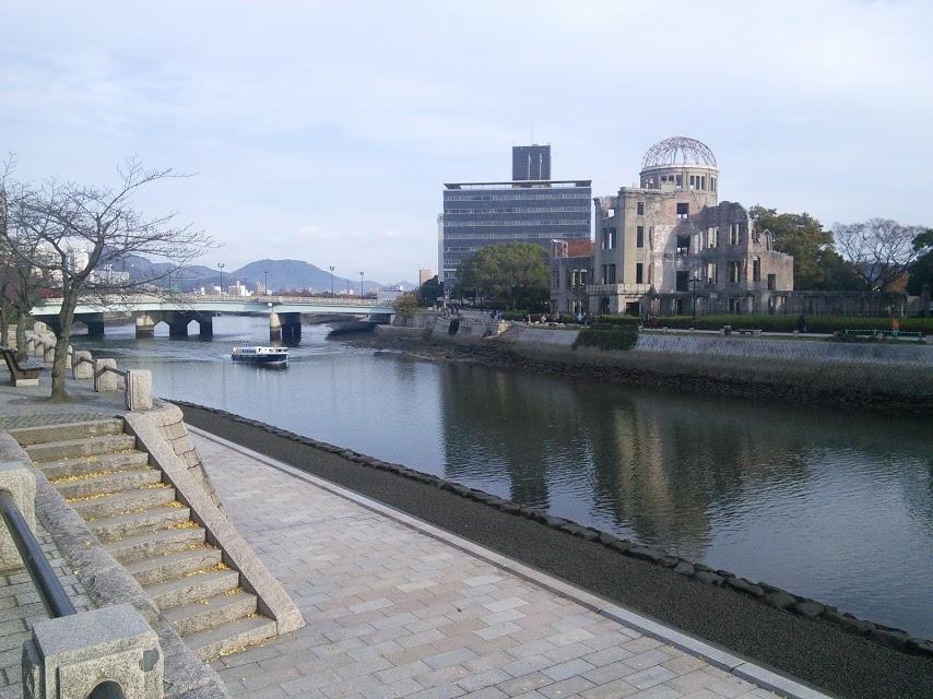 元は「広島県産業奨励館」で、大正4年(1915年)の竣工だという。天井の上に円形ドームが突き出ていて、元々は美しい建物だったことが想像できる。そのドームの骨組みだけがおどろおどろしく残って、原爆の凄まじさを現代に伝えてくれるのだが、逆に考えれば、原爆爆心地近くで直撃を受けておきながら、よくもこれだけ骨組みが残ったものだと感心する。よほど頑丈な設計だったのだろう。これが軟な建物なら跡形もなく吹き飛んで、今のような「負の世界遺産」にもなれなかったはずだ。そう考えると、形状と言い、頑丈さといい、残骸の見た目と言い、この建物の何か運命的なものまで感じてしまう。原爆の恐ろしさを世界中に直接訴えるためにここにあるとしか思えない。是非世界中の人々に見て欲しいと思う。