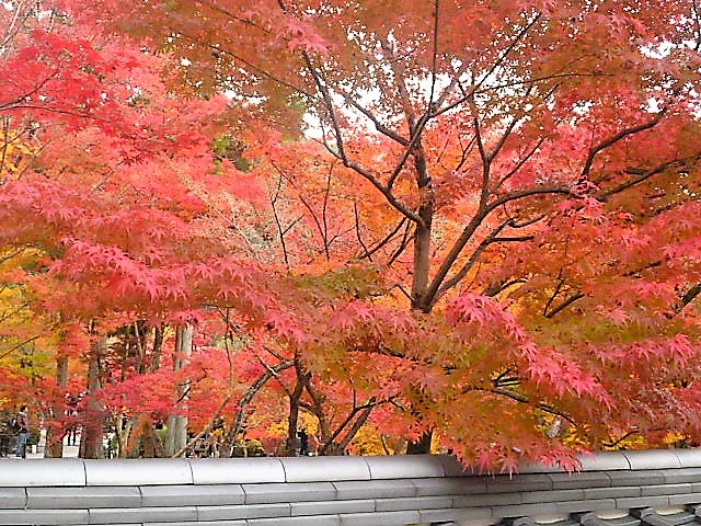 11月中旬、南禅寺から徒歩で10分…[モミジの永観堂]。ライトアップを楽しみに来たのですが、17時に着きましたので寺院の中を覗きました…唖然!モミジの`真っ赤な紅葉`が重なって目に入ったのです(^^!) あいにく昼間の開園は締切りで、ライトアップの開園まで待たなくでは…観光客が次々に並んでいます。 で、ライトアップが灯りました、一斉にシャッターを! 池の中にも紅葉/寺院と紅葉がマッチング//で満足でした;もしかしたら、これ以上の紅葉は,,!