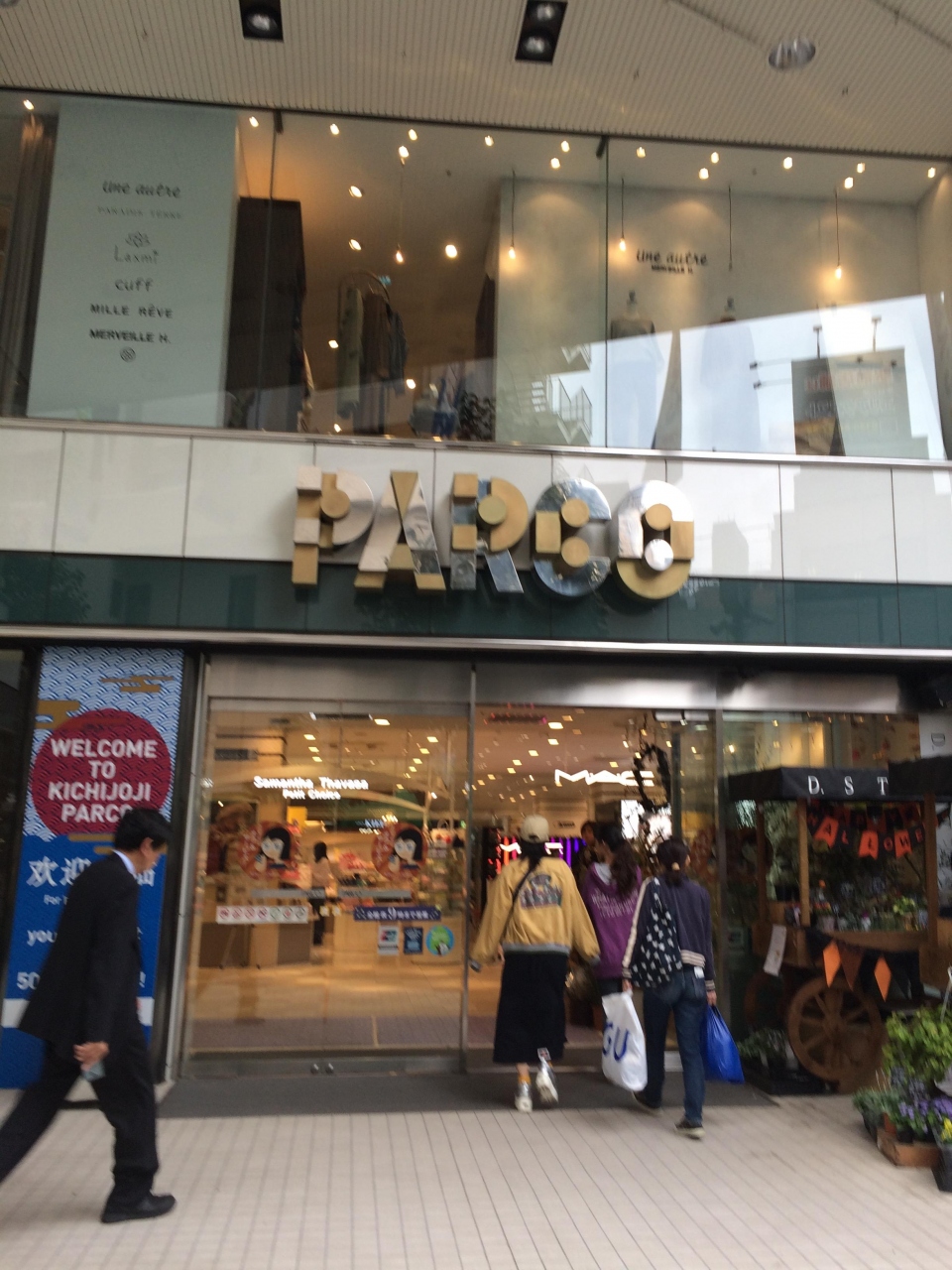 井の頭公園に行くのに、JR吉祥寺北口を出ると近くにパルコがあったので入りました。1階の化粧品売り場は盛況で、2階から上に行くと人混みが少なくなっていました。女性ファッションが中心で、若者系デザインが多かったように見受けました。地下2階の書籍売場も充実していて、男性にも便利なショッピングモールでした。