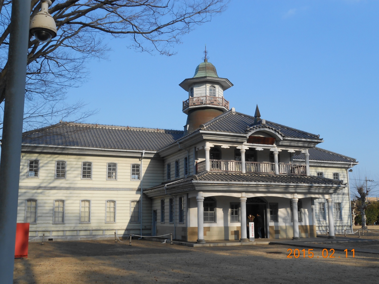 茨城県立歴史館に来たら、一番に目を引く建物が「旧水海道小学校本館」ですね。
