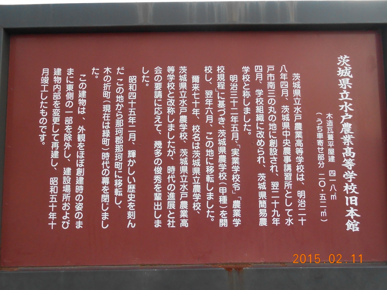 「茨城県立水戸農業高等学校旧本館」は入る事は出来ず、外観のみ。