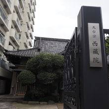 桜田通りに面しているお寺のうちのひとつです。ちいさなお寺で、大きなマンションの横にあるためいっそうこじんまりと見えますが、お堂は風格を感じる屋根瓦でした。