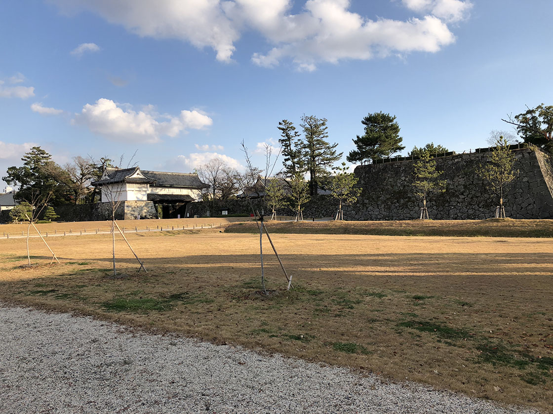 徴古館から南へ広い車道が堀を渡るとそこは場内で、佐賀テレビや県立美術館がある。そこを東へ行くと大きな城門のある本丸が見えてくる。江藤新平などが官軍と戦った激戦の地だ。本丸は取り壊されたが、跡地に本丸歴史館が建つ。かつては広い敷地に建つ平城で、外部からは城壁に囲まれて見えず、沈み城ともよばれたそうであるが、そのことが伺えるように空が広く、本丸の石垣が見えてからもなかなか城門に行き着かないほどである。