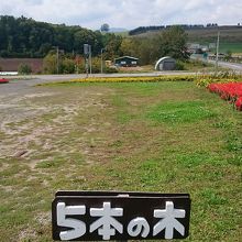 かんのファームの丘から国道を挟んだ向こうの丘に見えました。「5本の木」「JALパック」と看板があり、「あ、これがあのいろんな問題を起こしている木?」と気づきました。