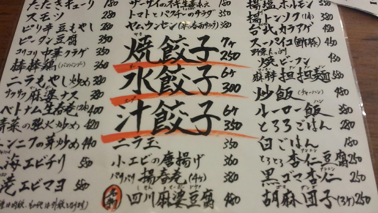 餃子店より他のメニューが多いです。