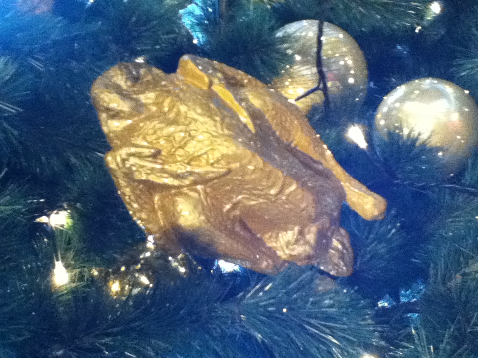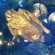 レストランフロアにクリスマスツリーがあり、みんな写真を撮っていました。よく見ると、飾りが食べ物ばかり。ドリアンやチキンの丸焼きが!!他にない飾りでびっくりしましたが、ちょっとおもしろい。