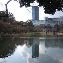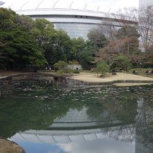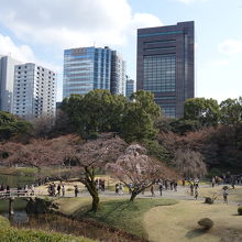 が、都心部に在るだけに借景が残念過ぎます。東京ドームの白い塊、ドームホテルや文京シビックセンターなどの高層ビル、最近は周辺大学も新しく高層ビルを造って、ビルに囲まれた庭園になってしまいました。