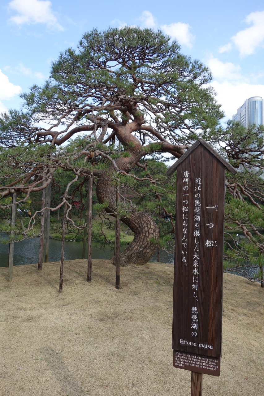 凛とした存在感を醸し出しています。見事な枝ぶりで、手入れのほどが知れます。光圀の時代からは何度も世代交代しては居るものの、庭園の中央、大泉水の主役を譲りません。もう少し注目されても良いのではと思います。