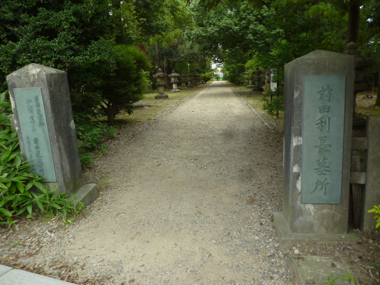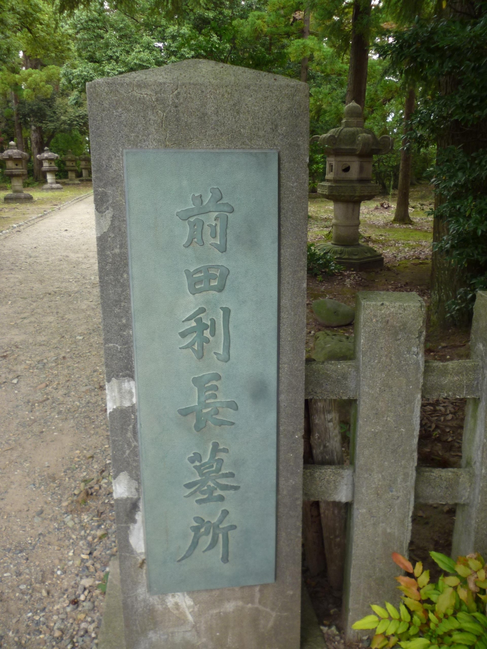 瑞龍寺から車で5分、八丁道を行くと前田公園があります。入り口から石灯篭が続く小道を行くと、そこに加賀藩第二代藩主前田利長の墓所がありました。正面には鳥居、お堀に囲まれた立派なお墓、大名の墓としては日本一といわれる高さ11.9メートル石塔があります。それだけこの力を持った大名だったことが、うかがい知れます。毎年9月13日の前田利長公顕彰祭の時にのみ一般公開されるそうです。静けさの中で、歴史に思いふける時間を体験しました。