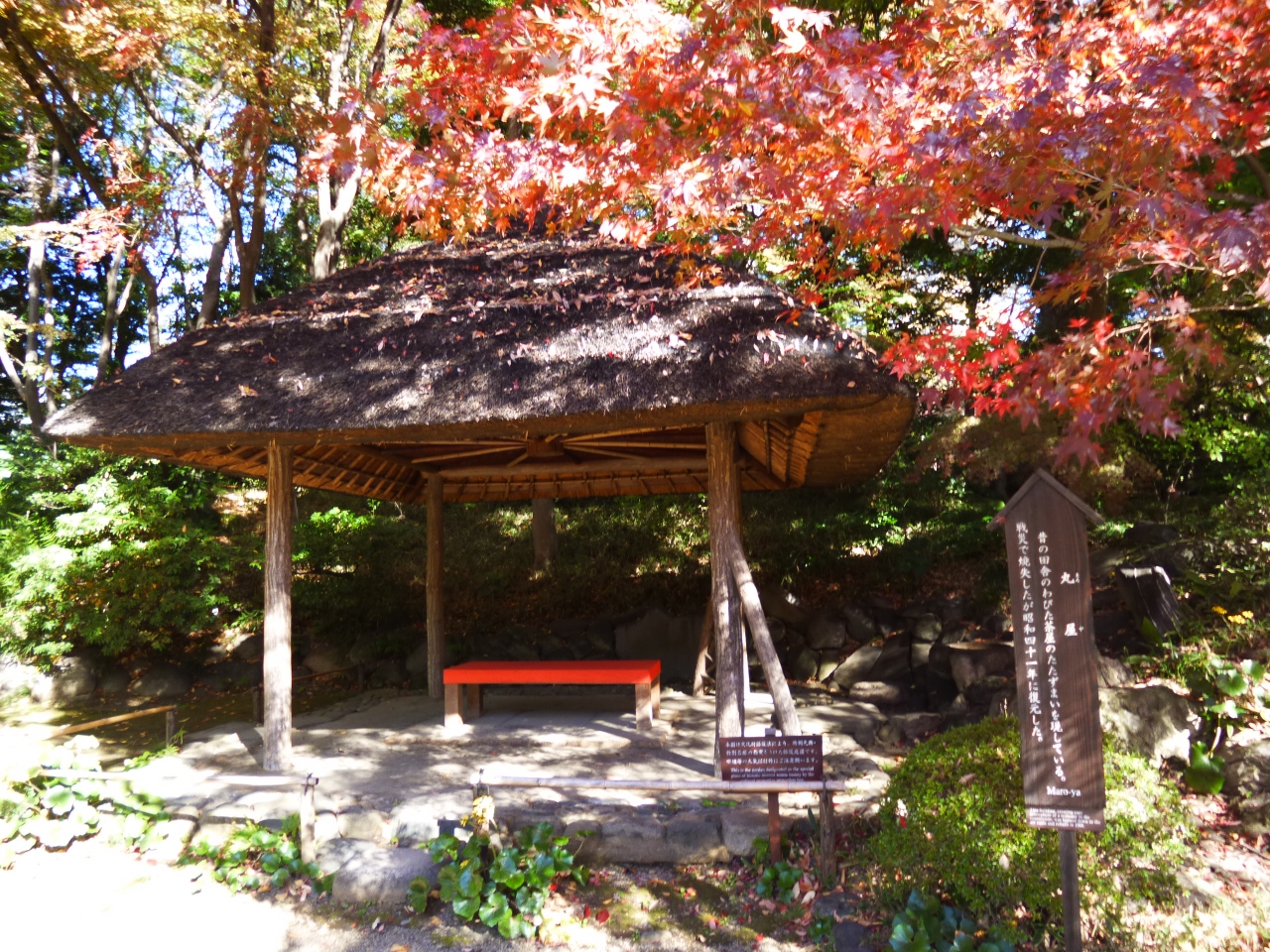 小石川後楽園内にある茅葺屋根の休憩スペースが「丸屋」です。