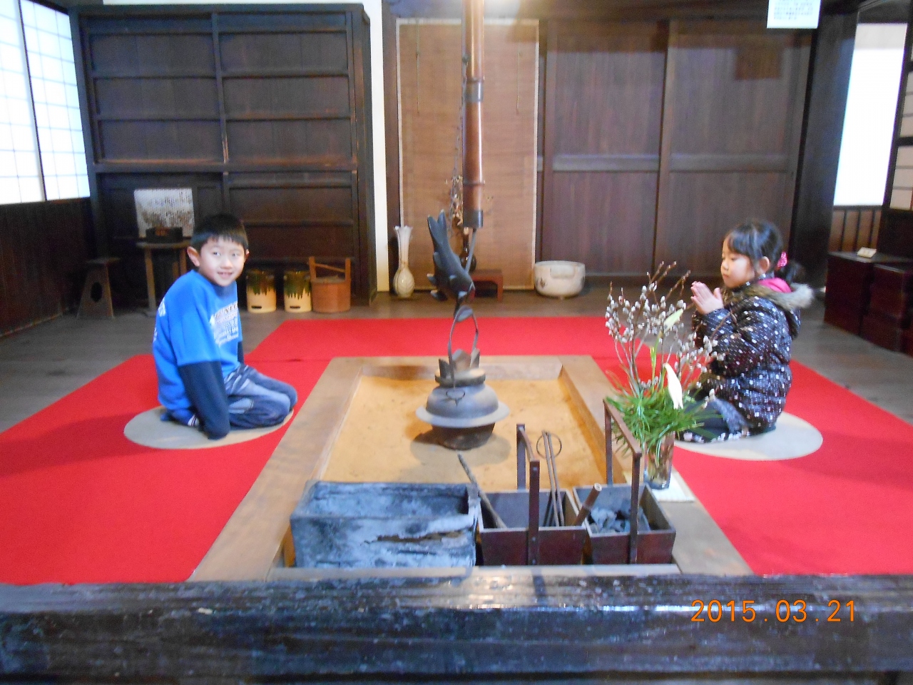 木村邸でも豪華なひな飾りが!素敵な囲炉裏や台所、壁には壁掛け電話機など懐かしい感じのする古き良きお屋敷でした。