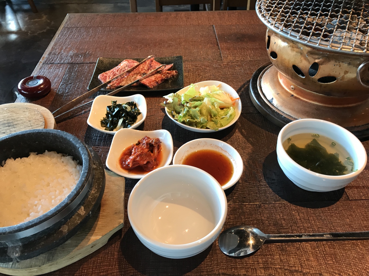 お台場アクアシティにあるKollaBo土日もランチサービスがあり、980yenで焼肉定食。お肉の質は良し、量はもうちょっとかな、、プラス500yen でお肉1.5倍になりますが、本体が950yen なのでお肉だけ見ると2倍にならないと割りが合いませね。ご飯は釜だきです。釜にいっぱいお焦げを残し、先ずはご飯一膳盛ります。そのあと直ぐに、テーブルのポット(出汁)を釜に入れて蓋をし蒸らします。一膳目を食べ終わった頃には、もう一杯だしご飯(雑炊)が出来上がりです。