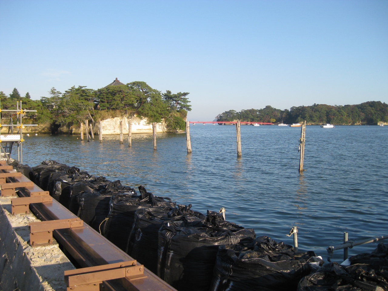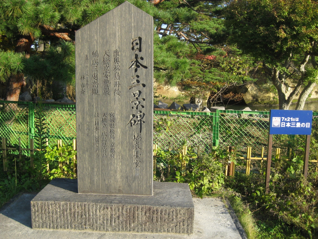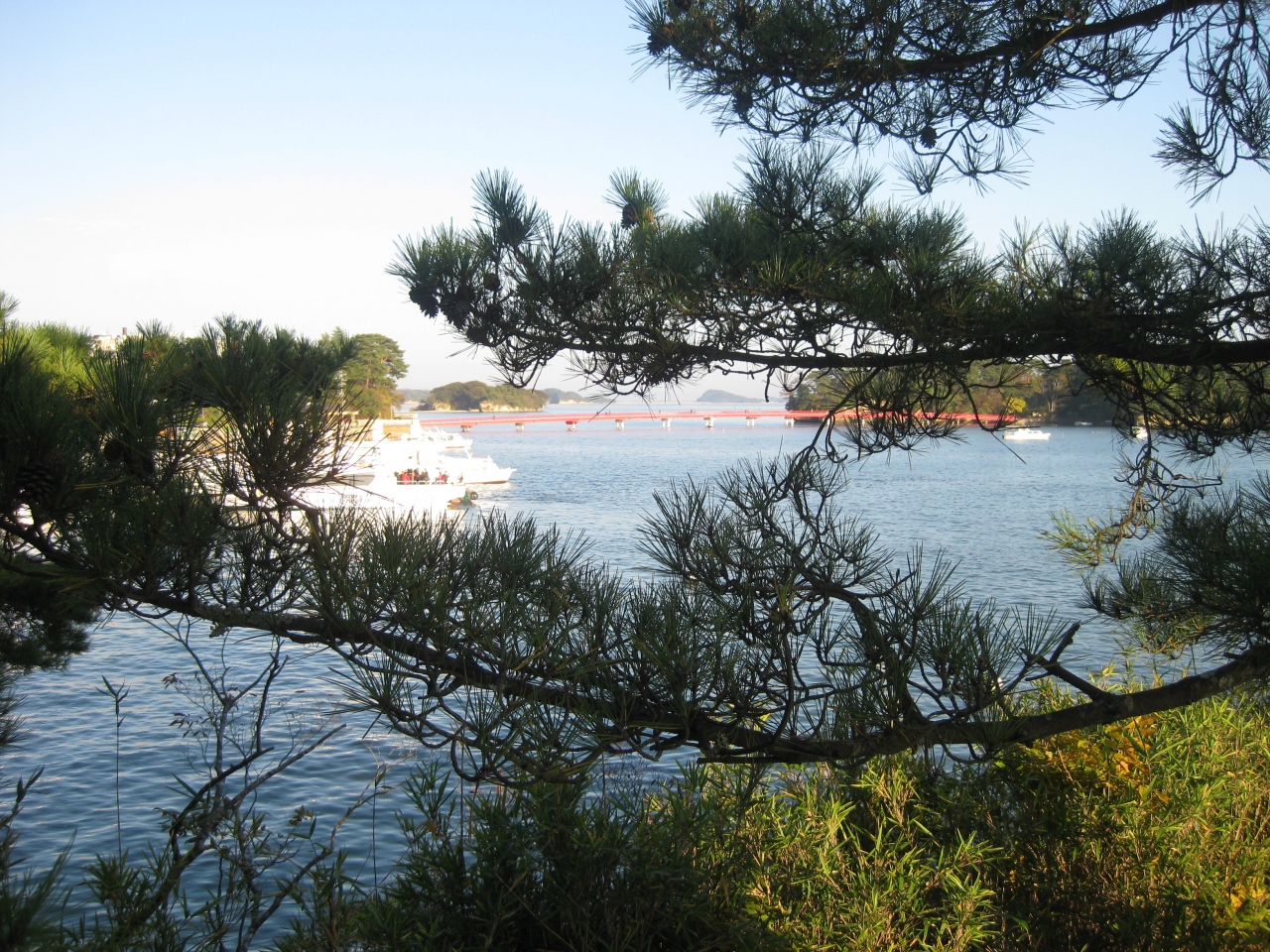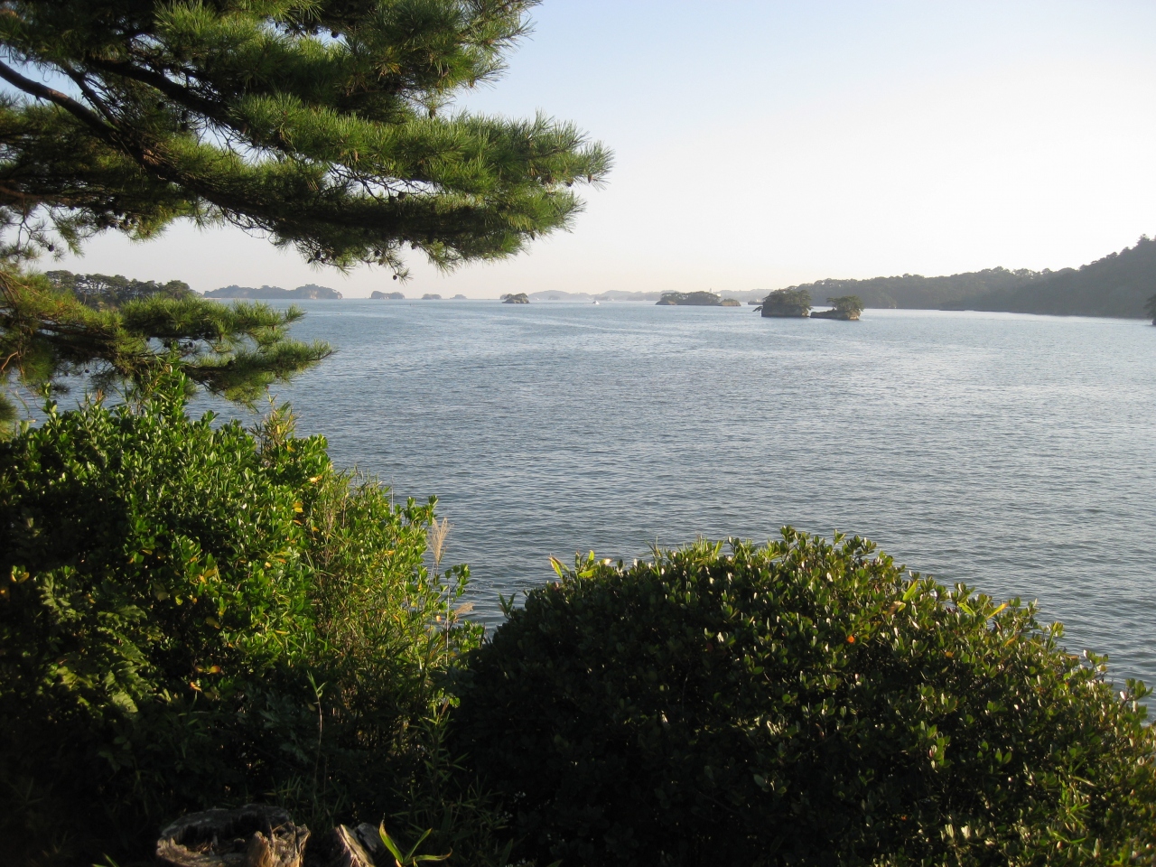 日本三景の名勝地松島の湾、大小260余りの松が生い茂る島々が海に浮かび美しい景観を生み出しています。松島の大禅刹瑞巌寺の山門前の波止場から湾内を巡る観光船が出ていて島々を近くで眺めることも出来ます。松尾芭蕉は松島を美しい場所として俳句に読みましたがそれは船の上からか海岸からか分かりません。どちらからでも美しい景観です。