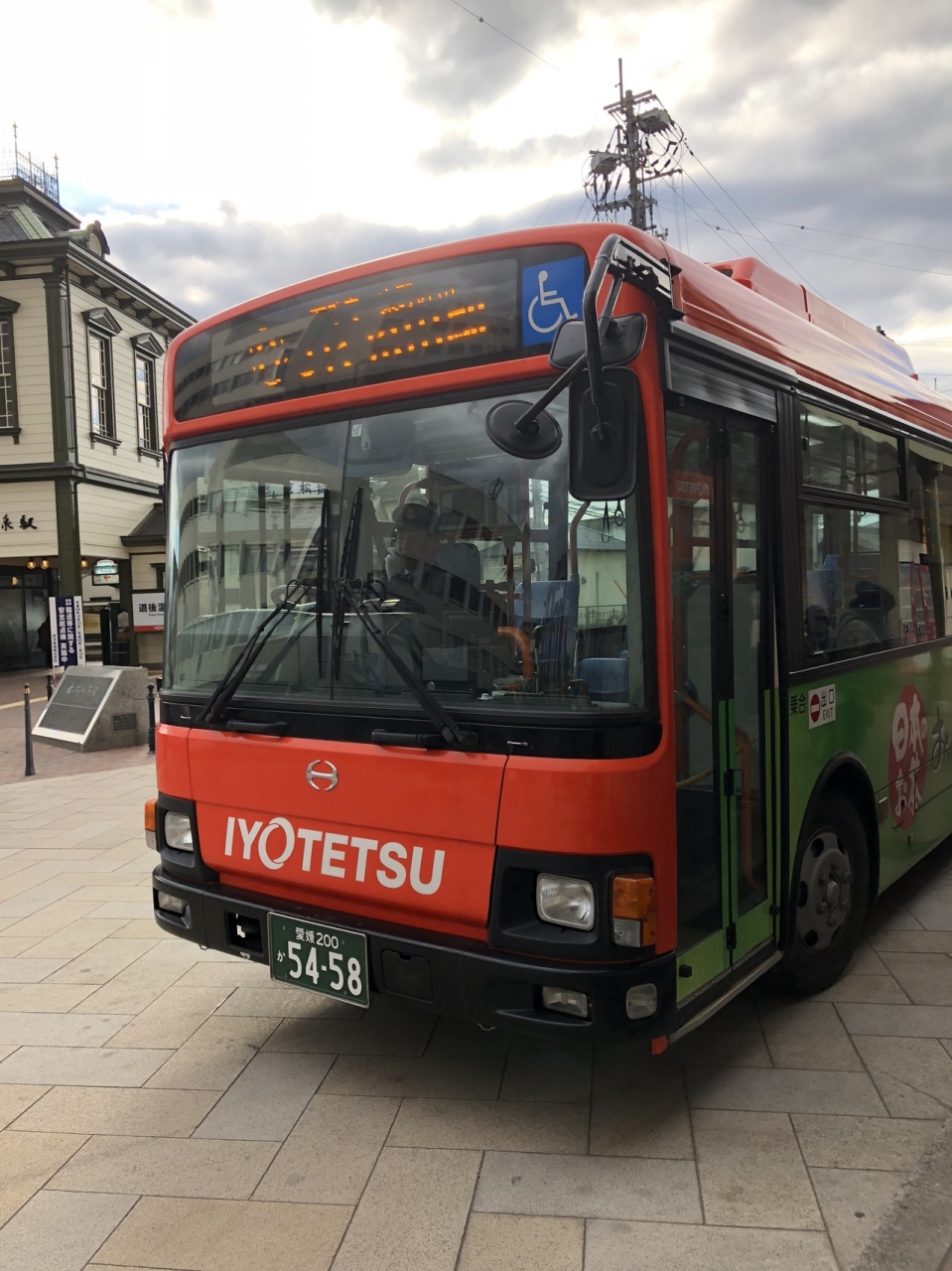 松山空港から市内まではバスで言えばリムジンバスと路線バスとが結んでおり、後者は市内のあらゆるところにバス停を持っており、観光で利用するにも価値がありました。多用するのであれば一日乗車券を利用するのがお得ですし、便利です。
