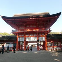 糺ノ森を抜けて、参道の突き当たりに朱色の楼閣がある。