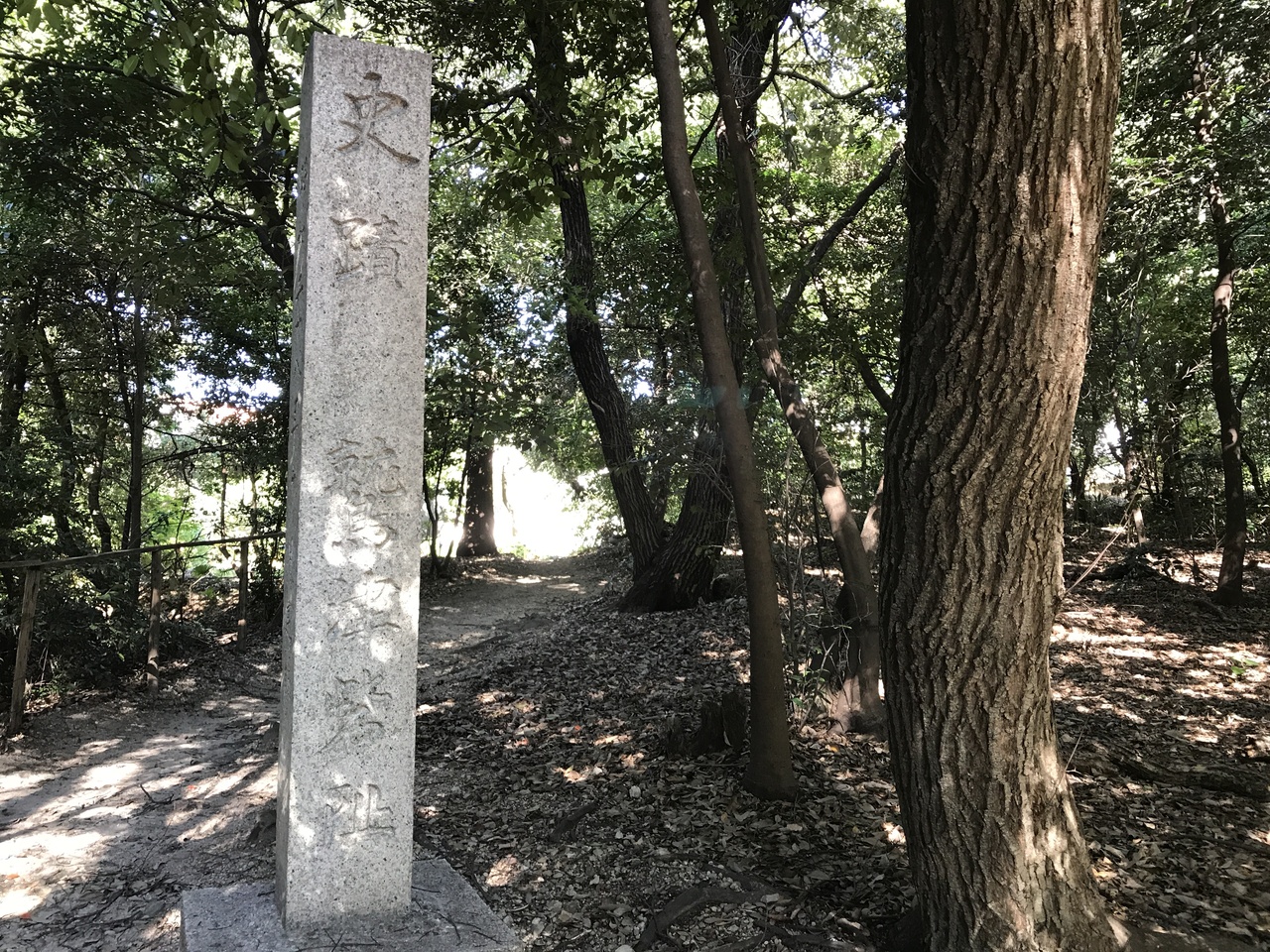 木々が覆い繁った薄暗い小山の頂上部と思われる箇所に城跡の石碑のみが建っていた。