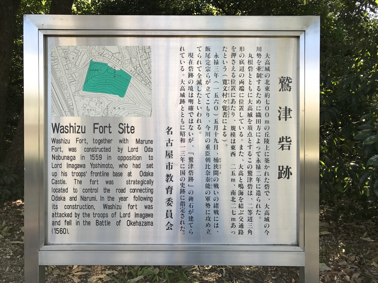 城跡は鷲津公園と名を変えているが、公園とは名ばかりで、木々が繁っただけの場所という感じだ。