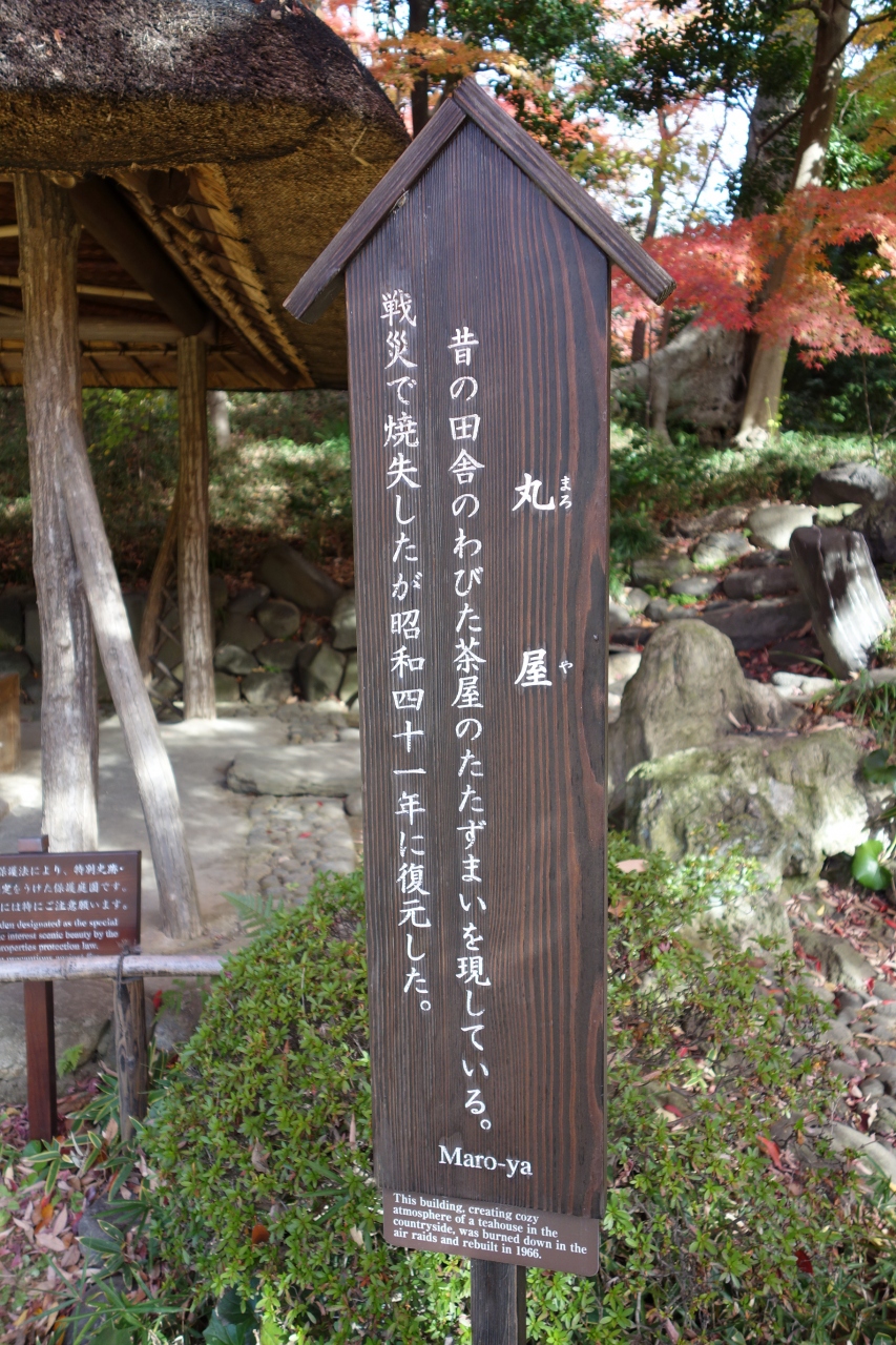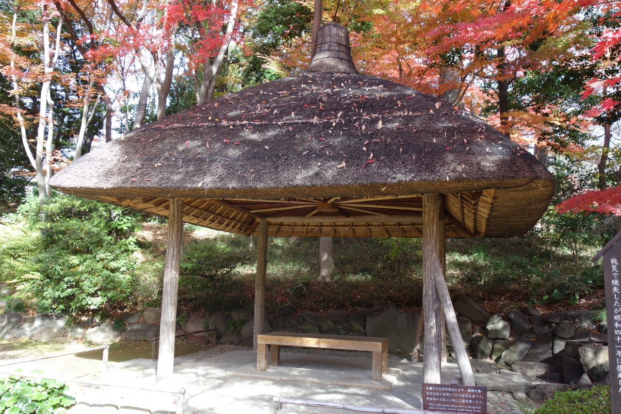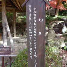 山のふもとに在ります。気にしていなければ何て事無い四阿です。特に周囲は緑深いところなので、山から下りて一息入れる事も有るでしょうが、丸屋(まろや)と名付けられているなんて思いもしないでしょう。昭和41年に復元された物だし、小さいです。