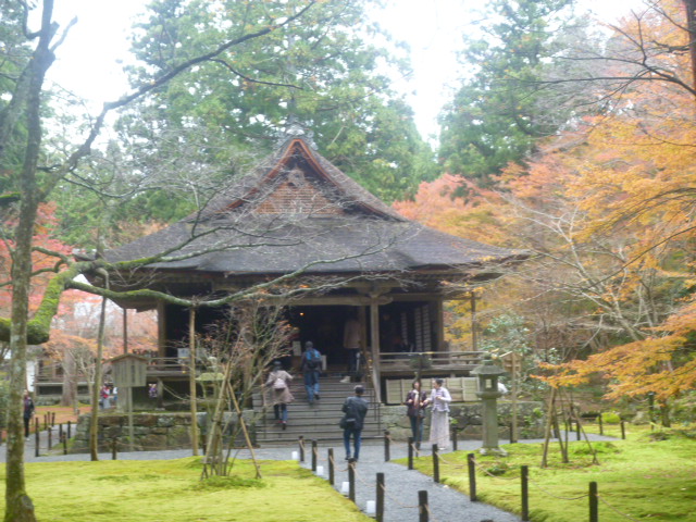 ♪京都大原三千院~♪は歌を暗記しましたよ。やっと念願かない[三千院]へ(^^) いつもは下調べをして行くのですが、今回は`歌によって思う三千院`だけでした。で、実際は? 往生極楽院&阿弥陀三尊像が想像していた通りでした(実は奥まった小さな寺院を!)。宸殿の`三千院`表札/聚碧園と有清園/わらべ地蔵さん//で、紅葉が見事でした。