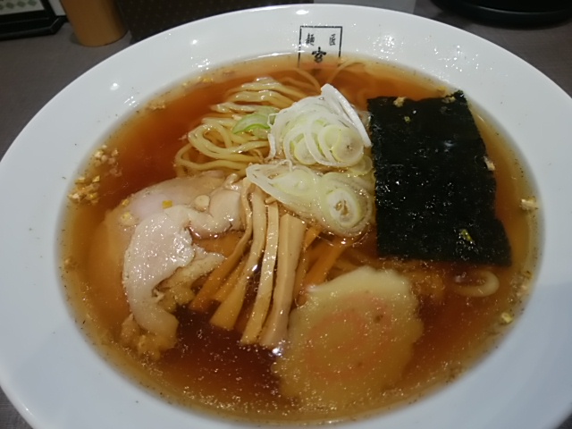 ララガーデン3階にあるラーメン店。ここの前を通りといつも柚子の香りがするので気になっていました。今回は、その柚子の入っているラーメンを注文。ラーメンのにおいのせいなのか実際のラーメンには柚子の香りがほとんど感じられませんでした。上にのっているのがチャーシュー1枚、細切れのメンマ、のり、ネギ、なるととシンプルで上品な印象のするラーメンです。男性だったら大盛りにした方が良いかも。あご出汁らーめんとありましたが、しょうゆ味はわかりますがあご出汁の出汁はよくわかりませんでした。