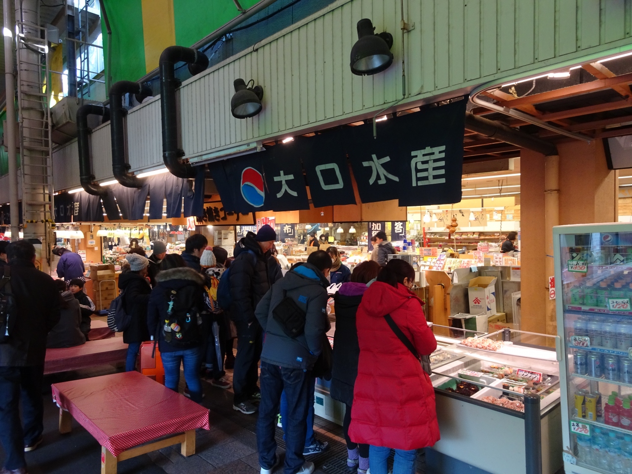 金沢市民の台所、てなタイトルをつけましたが、実のところ観光地化された市場っていうイメージの方が強いと思います。近年多く押し寄せる外国の方々を意識したお店も多いのも事実ですね。基本は蟹、魚など海鮮ですが、野菜、果物なども多く、海鮮丼やお寿司を食べさせてくれるお店も多く存在します。なわけでお買いものだけでなく、食べ歩きも楽しいかも。冬場は冷えるので防寒対策をしっかりされた方が良いでしょう。