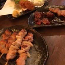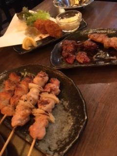 今回は、ニンニク丸揚げ・豚串・鳥串・ポンポチ・牛タン焼き・牡蠣フライを注文。