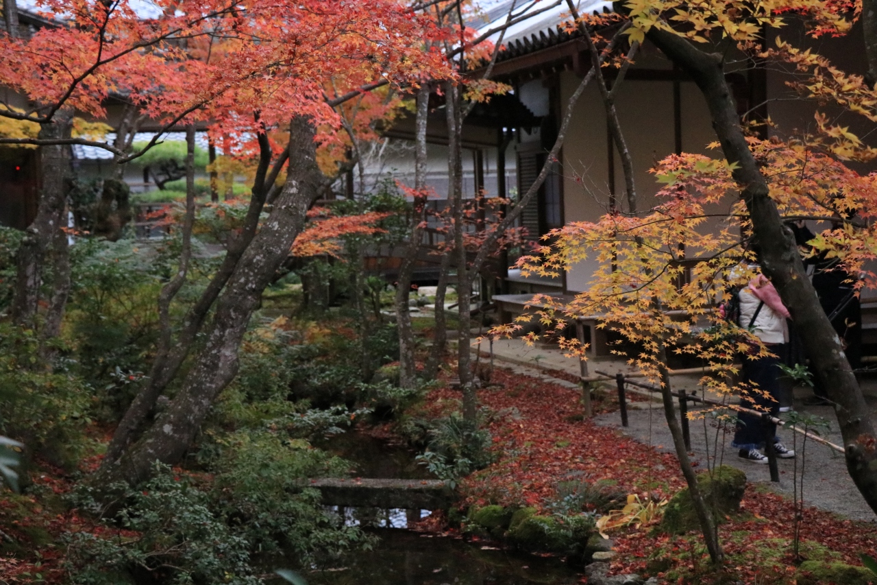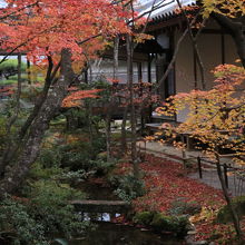 本堂の表側は普通の寺院正面と変わりませんが、裏側はちょっとした庭になっており写真撮影に適しています。時期になると紅葉も綺麗に咲くので、本堂裏の建物と合わせて撮影すると綺麗です。上り坂が続いている寺院内で、本堂裏側の縁側に腰かけて休むこともできました。