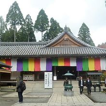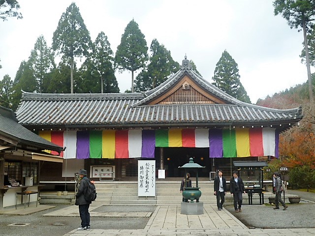 11月中旬、`三千院 往生極楽堂`から`あじさい苑`を通ったあと[金色不動堂]がありました。紅葉はお堂の右左側/前面にあり、新しい堂(建立平成元年!)とのマッチングもありました…往生極楽堂は旧堂の代表ですね! お堂の右手に平屋(待合場?)があり、無料のお茶サービスをいただきました。院内を歩いたのでチョッと疲れた感じがあって一休みしました(^^)