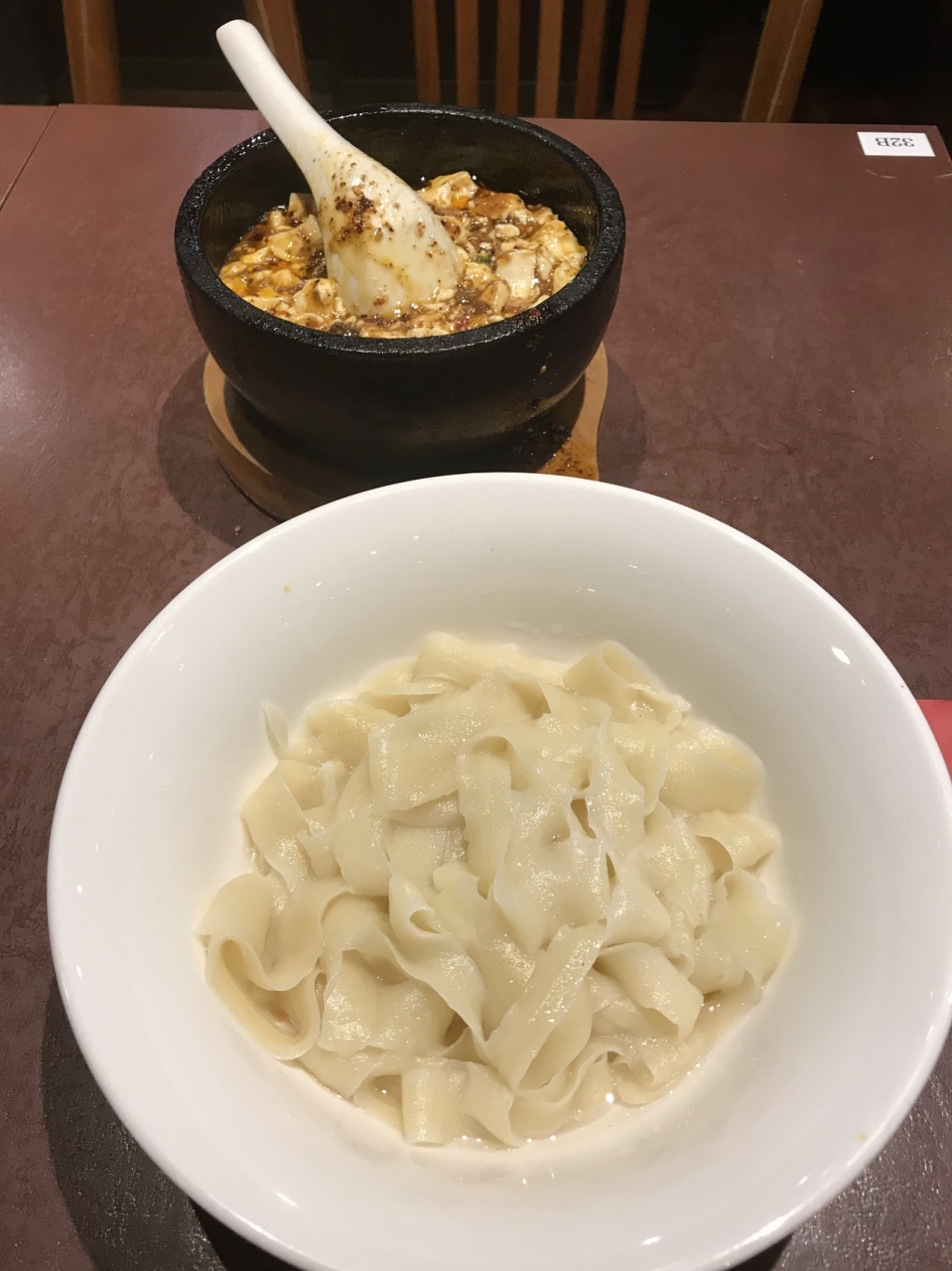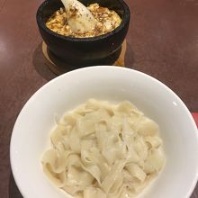 ということで、石焼麻婆豆腐に刀削麺を組み合わせたものを。
