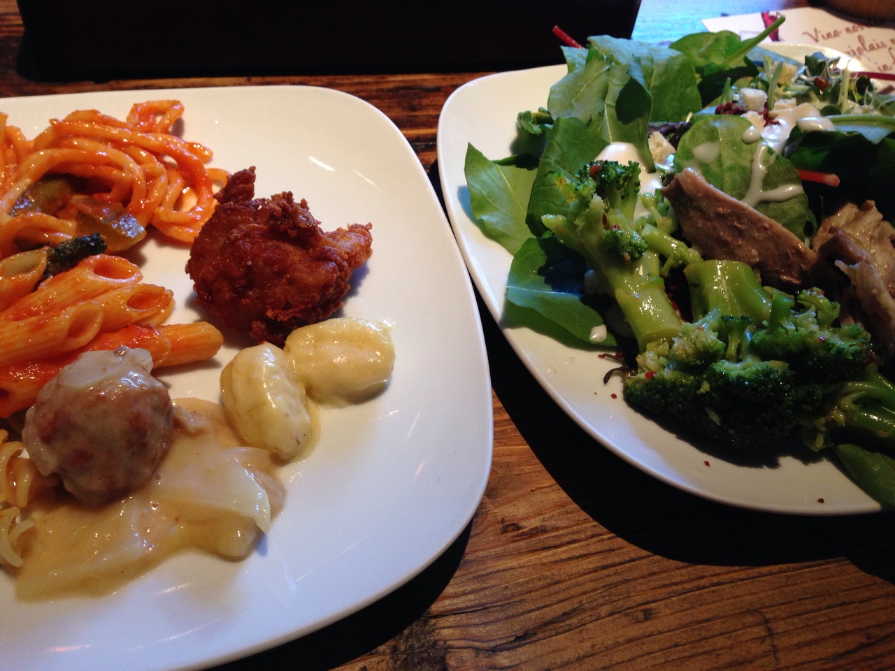 ランチビュッフェに行ってきました。お店自体も座席も広くないので落ち着いて食べるといった感じではない印象。毛利庭園を眺めてたべられる屋外の席もありそちらの方がゆったりした作り、ただお料理は室内なので出たり入ったりは必要。ピザはもちろんサラダやパスタもおいしくスタッフさんも明るく、満足。サラダのドレッシングのチョイスが良く 三皿食べてしまいました。