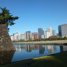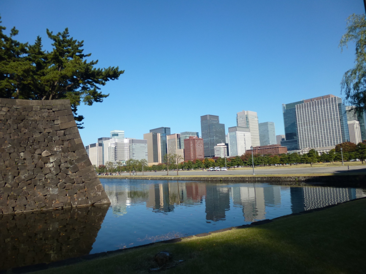 皇居前広場からお堀に沿って歩いていくと、外桜田門があります。外桜田門の間から国会議事堂の見える、面白い光景です。印象に残ったのは、外桜田門の中側、お堀からそびえる石垣の曲線の美しさでした。固く大きな石で、このような美しい曲線が生み出される建築技術は、素晴らしいと感じさせられました。