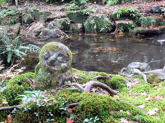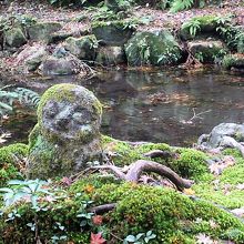 紅葉も取り込んで苔むした地蔵さん!