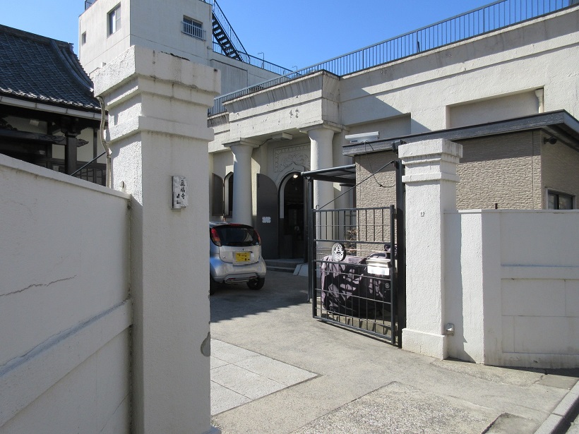 東本願寺にほど近い西浅草1丁目にあるお寺の一つです。本堂は純和風でお寺らしいのですが、向かって右手にヨーロッパの宮殿を思わせるような白亜の建物もあって一風変わった雰囲気でした。敷地は綺麗に舗装されていて、都会のお寺らしく檀家さんが雨の日でも足元を気にせずに訪れることができるよう配慮されていました。