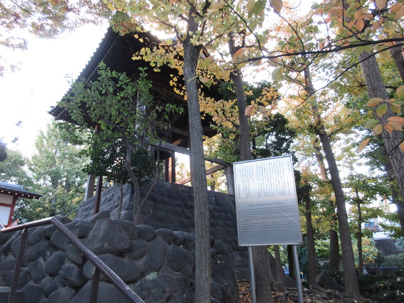 浅草寺の仲見世通りを過ぎて宝蔵門の手前を右手にすすむと小高い丘の上に朱色の弁天堂とこちらの鐘楼がありました。個人的には弁天堂よりもこちらの方な「わびさび」が感じられて好きですね。観光客の多い浅草寺ですが、海外からのお客さんにも日本の除夜の鐘の心に染み入るような響きを聞いてもらいたいと思いました。