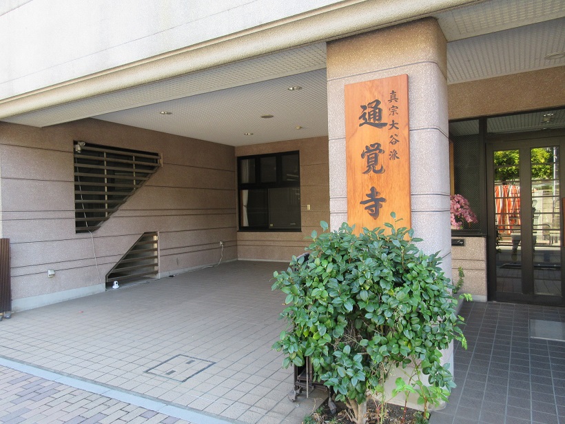 東本願寺の周辺にあるお寺巡りをした際に立ち寄った、西浅草1丁目に建つ浄土真宗大谷派のお寺です。近代的な白っぽいビルで、1階が駐車スペースを兼ねていて、コンクリートの柱に「通覚寺」と大きく書かれた木の表札が掲げられていました。それが無ければカバンや靴を扱うデザイン会社の事務所かと勘違いし手素通りするところでした。