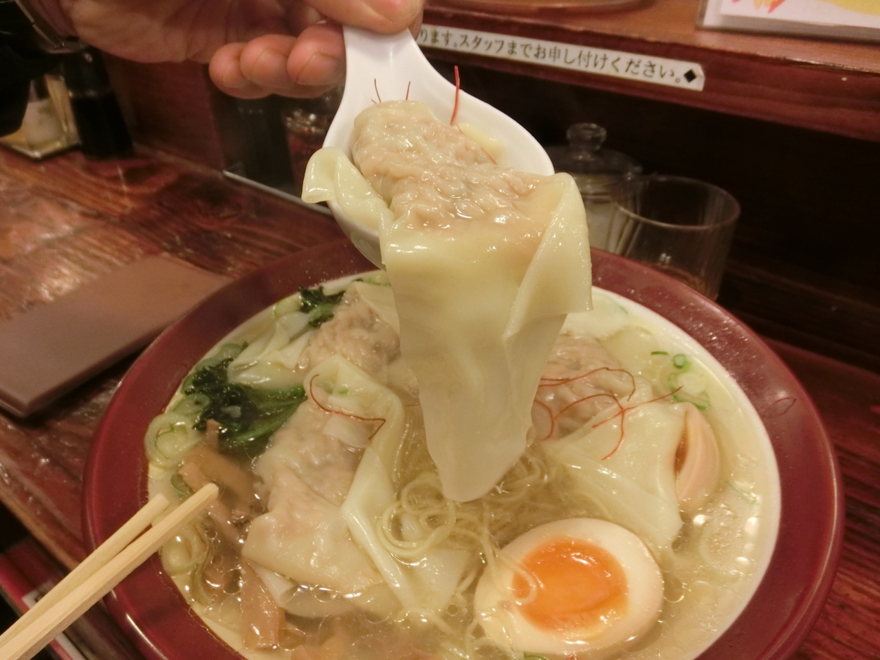 わんたんの大きさ3倍と言う「あらびき大肉汁わんたんめん」(塩味)