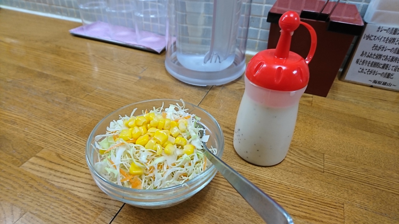 末広町駅近く、嬬恋坂交差点にあるカレーのお店。お店の看板に「日本人が思い描くカレーライスのお店」とある通り、どこかで食べたことのあるような懐かしいカレーライスです。今回はノーマルなジャンカレー520円とサラダ150円をオーダー。注文は食券機で買います。カレールーはかなりの時間煮込まれており、お肉も野菜も溶けていて、具はたまにマッシュロームに出会う程度。辛さは中辛で、後から辛さが追いかけてくるが、程よい辛さ。辛さは残らないのがよいです。ご飯の量は普通盛りで350gあるので、うっかり大盛りにすると大変なことに。ちなみに大盛り550gあります。食べ終わるとまた、食べたくなるような日本人が大好きなカレーライスのお店だと思います。コスパはかなりよいです。