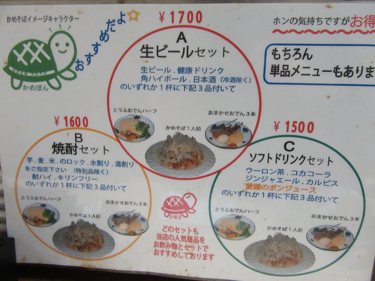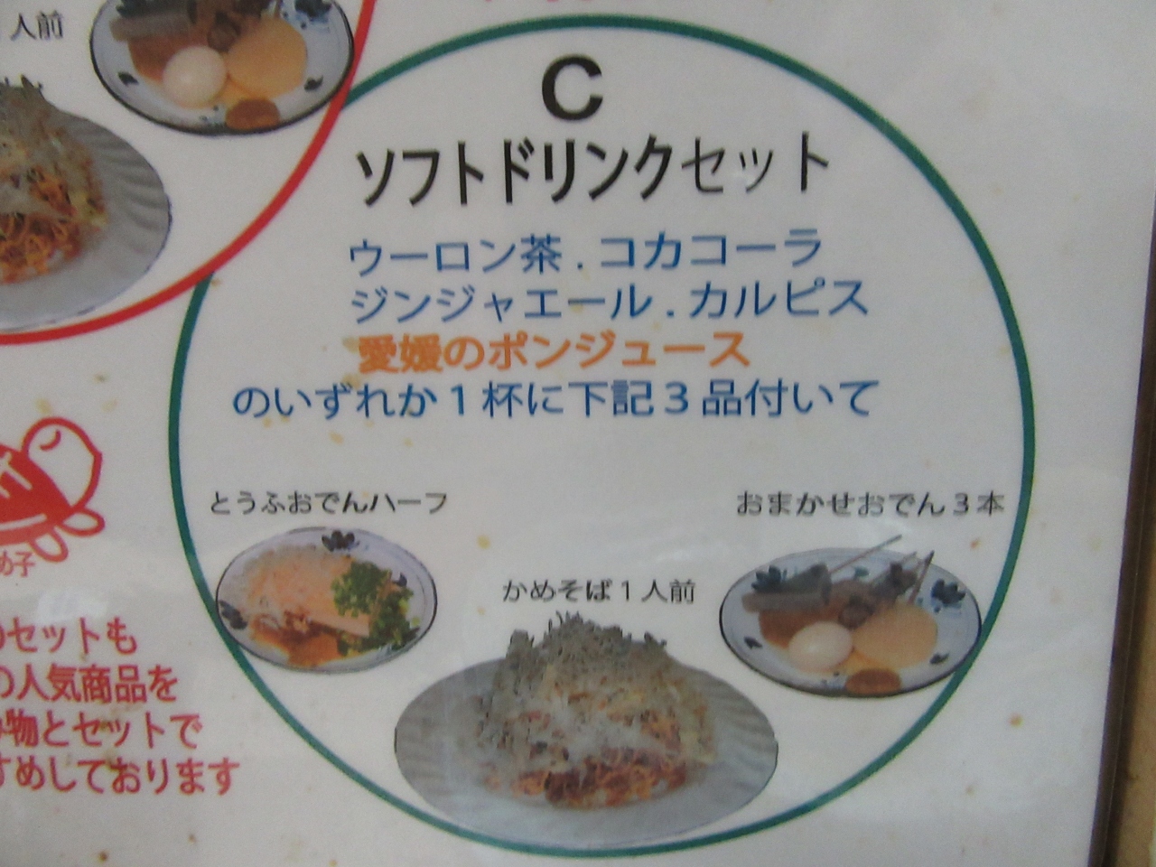 かめそば・半湯豆腐・おでん3品・ソフトドリンクのセット
