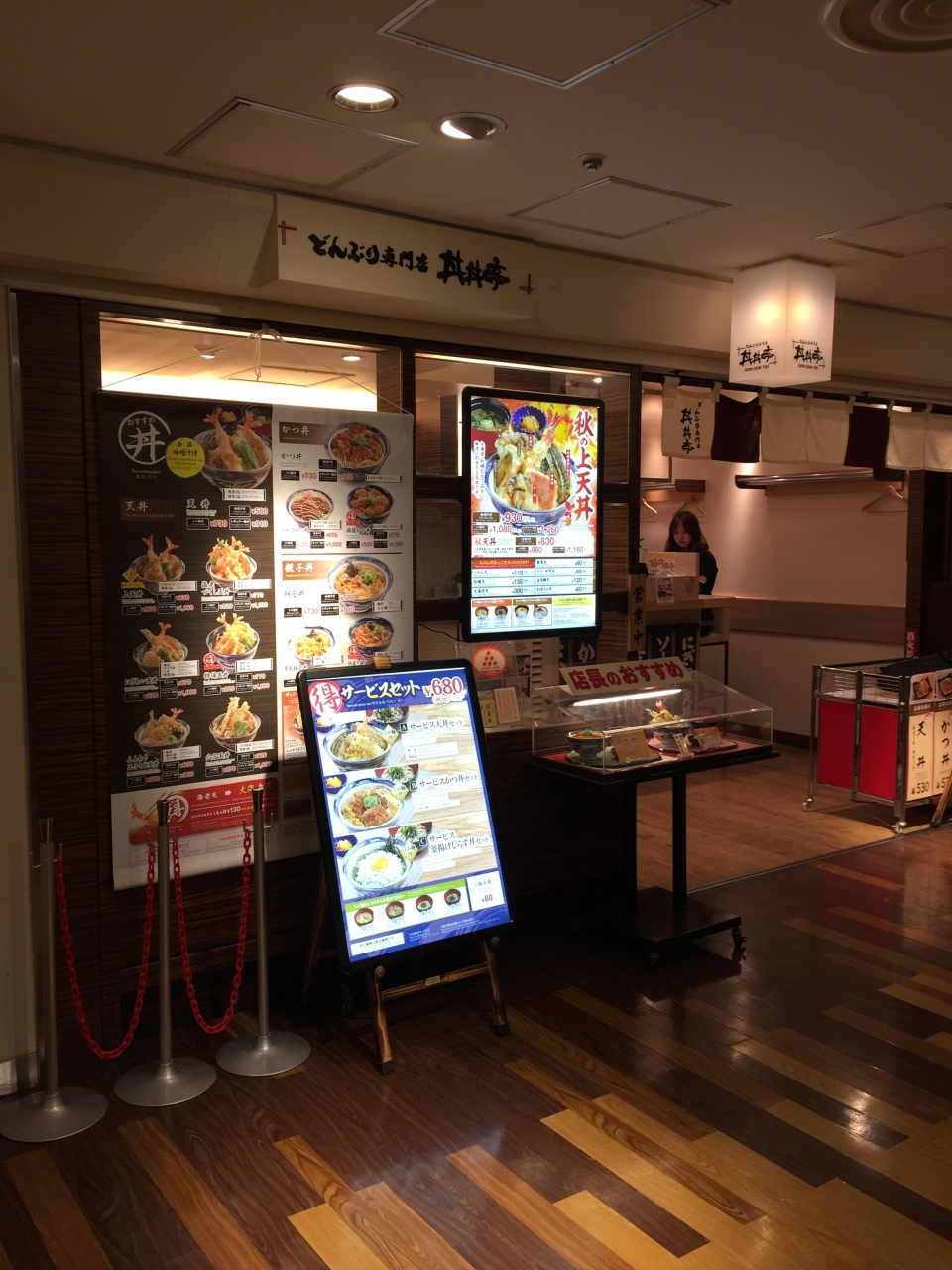 丼ぶり物の専門店です。吉野家やてんや程は安くありませんが、680円で提供しているサービスセットがおすすめです。ちょっと珍しい釜揚げシラス丼があったので、これをいただきました。まずはシラスをひと口。甘みがあって美味しいです。次に、上に乗っかっている生卵を混ぜて、更にひと口。甘みというか、コクが出てこれまた美味しい。けっこう正解だったかもしれません。セットには、お椀サイズの麺も付いてました。店内はカウンター席の他、テーブル席もあります。