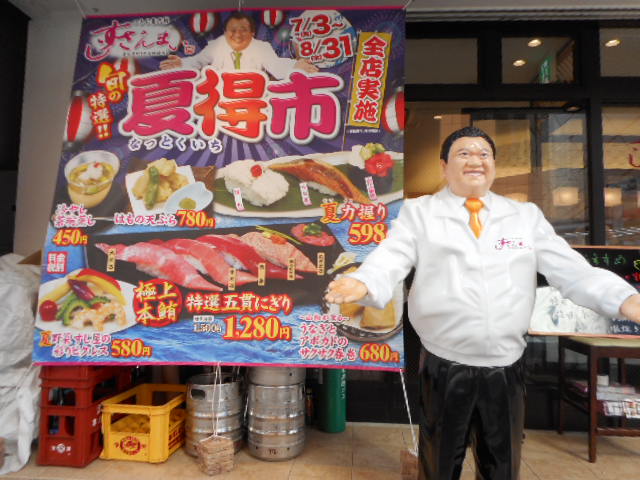 横浜駅の西口にあるお店です。ビブレの横あたり、ドンキの手前あたりです。入り口にあの有名な社長の像が建っているので、わかりやすいです。前に築地で行ったときはとても混んでいて大変でしたが、平日昼間だったので、すぐ座れてよかったです。味はいですが