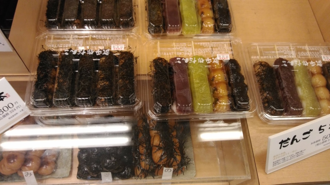 栃木駅前にあるだんごとせんべいの店。栃木県内に数店舗あるが栃木市内が本店でここは駅前店。団子が5種類味があって一本からばら売りしているというので中に入ってみたが既に16時過ぎでばら売りは終了とのこと、5本セットで売っているがおいしそうだった。