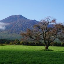 岩手山の山すその雄大さに一本ポツンと建つ桜の健気さがコラボして