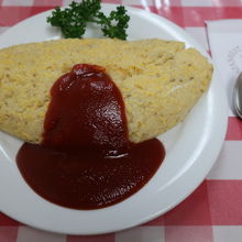 オムライスは卵を混ぜた御飯を焼いたもので、食べたことがない不思議な触感。カツレツはサクサクした衣のトンカツ。ウースターソースが良く合います。