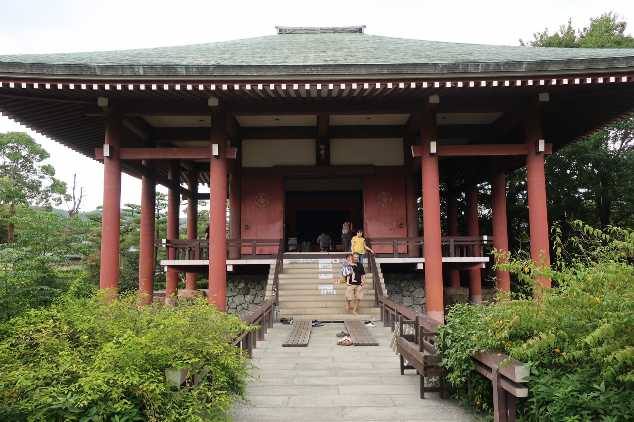 法隆寺 東院伽藍の近く裏側に中宮寺はあります。このお寺は建物は再建された新しいもので大したことはありません。ここで必見なのは日本最古の刺繍 天寿国曼荼羅繍帳(複製)と、弥勒菩薩半跏思惟像。弥勒菩薩半跏思惟像はアルカイックスマイルの代表作で、緑の旧50円切手に描かれた仏像です。堂内では解説の音声が流されているので、両方ともに理解しながらじっくり座って見ることができます。
