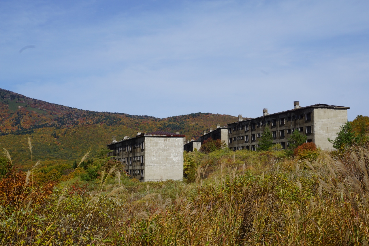 少し山を越えると突然現れる廃墟の建物群